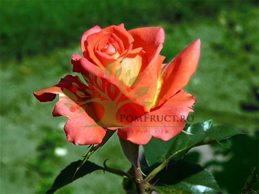 Monica este un trandafir hibrid de ceai spectaculos, apreciat pentru combinația sa vibrantă de culori și eleganța florilor mari. Este un soi care atrage imediat privirea în grădină datorită contrastului dintre petale și frunzișul verde închis.